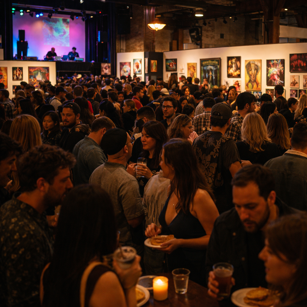 🎨🥞 Pure SF chaos in the best way: emerging artists, DJs, drinks, a packed room, and somehow pancakes in the middle of it all. It’s not a museum night. It’s not a gallery opening. It’s a creative spillover that feels messy, social, and very Bay. This is the kind of event that works because it refuses to be too neat. You go for the curiosity, stay for the people, and leave with one of those random city-night memories that actually sticks. 👉 Save this now, go late, and treat it like one of those random city nights that turns out to be the one everyone remembers. ⚡ Infa · happening now 👥 Recommended by real people 🎨 AI illustration image (for vibe)
